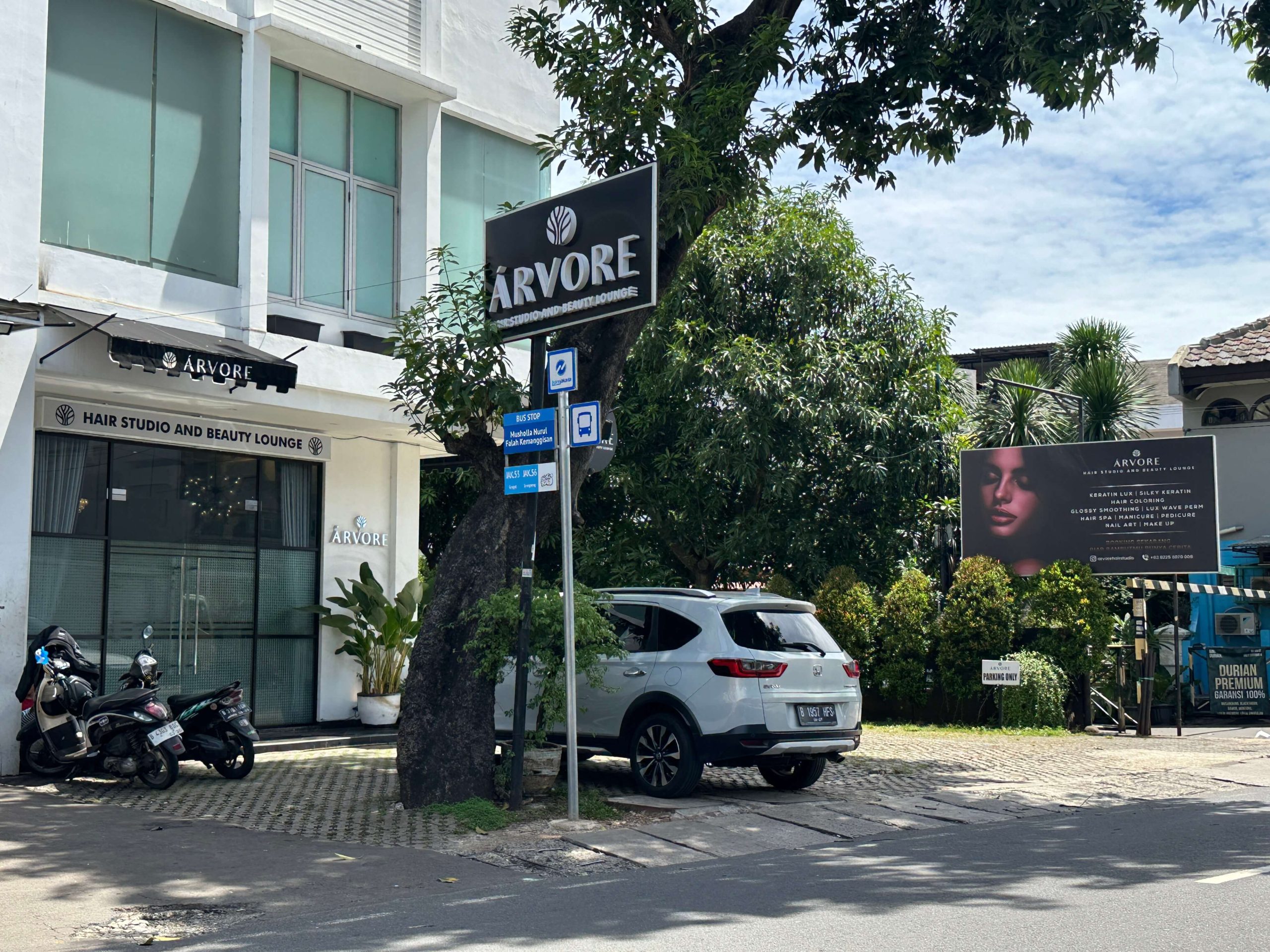 With a luxurious and welcoming lounge interior and professional stylists, every guest enjoys a comfortable and satisfying personalized experience. Arvore also provides a private room for hijab-wearing clients who prefer treatment with full privacy, as well as a prayer room. In addition, Arvore Hair Studio offers spacious parking that accommodates both motorcycles and cars, with capacity for up to eight vehicles.